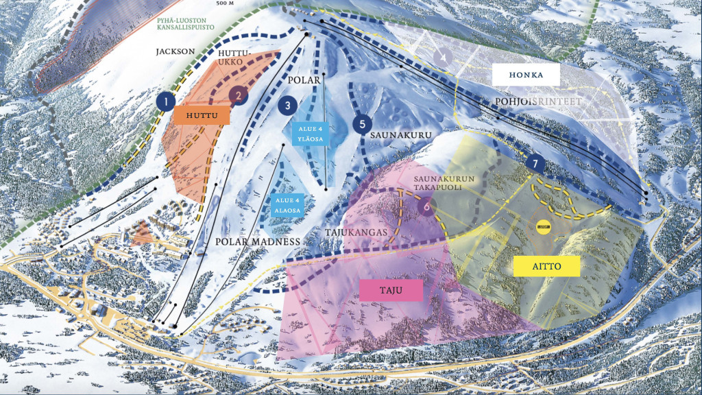 - Located between the resort’s Pyhätunturi run 3 and the southern border of the National Park.