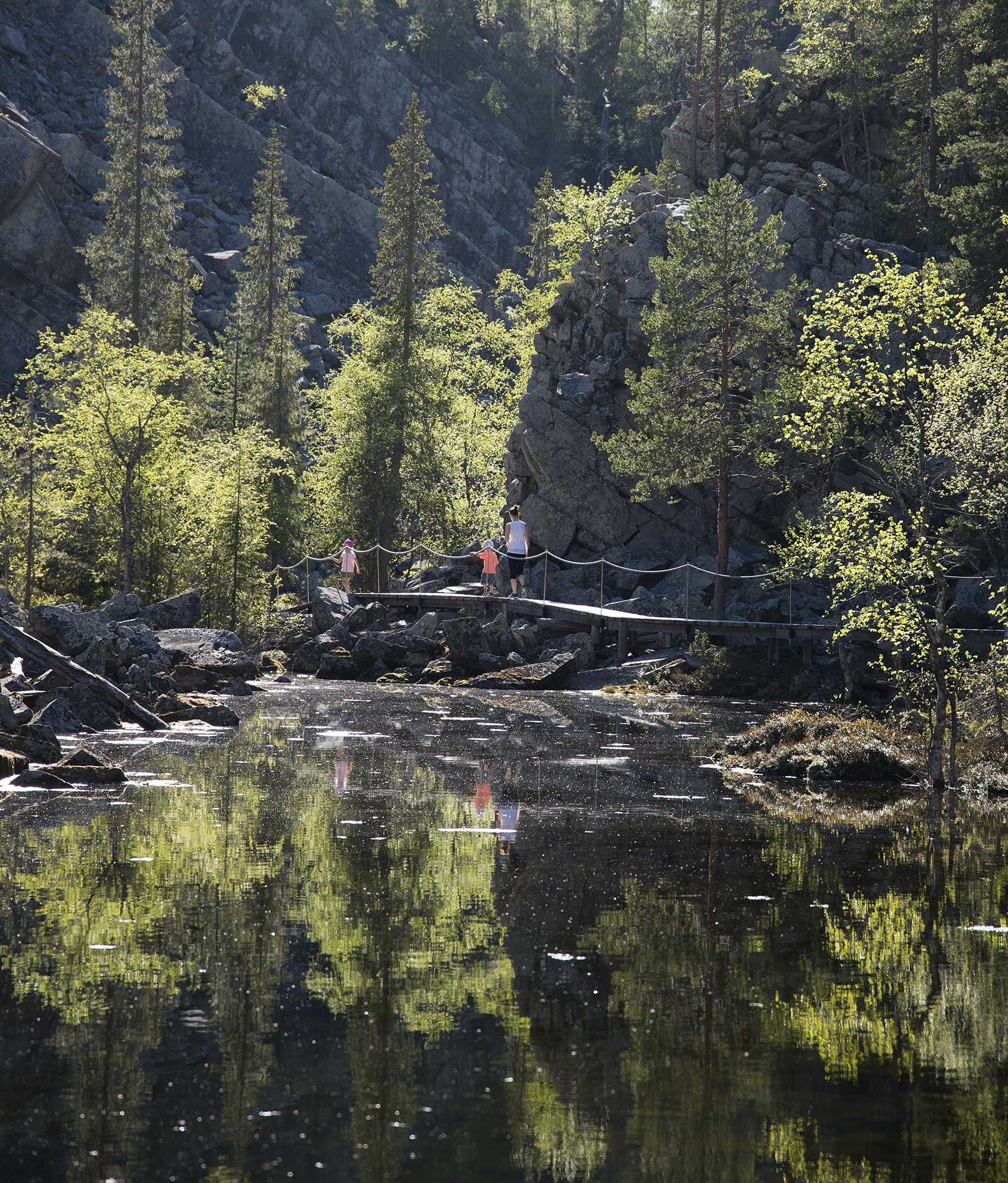 Pidä tauko Karhunjuomalammella ja jatka kohti Pyhän rinteitä