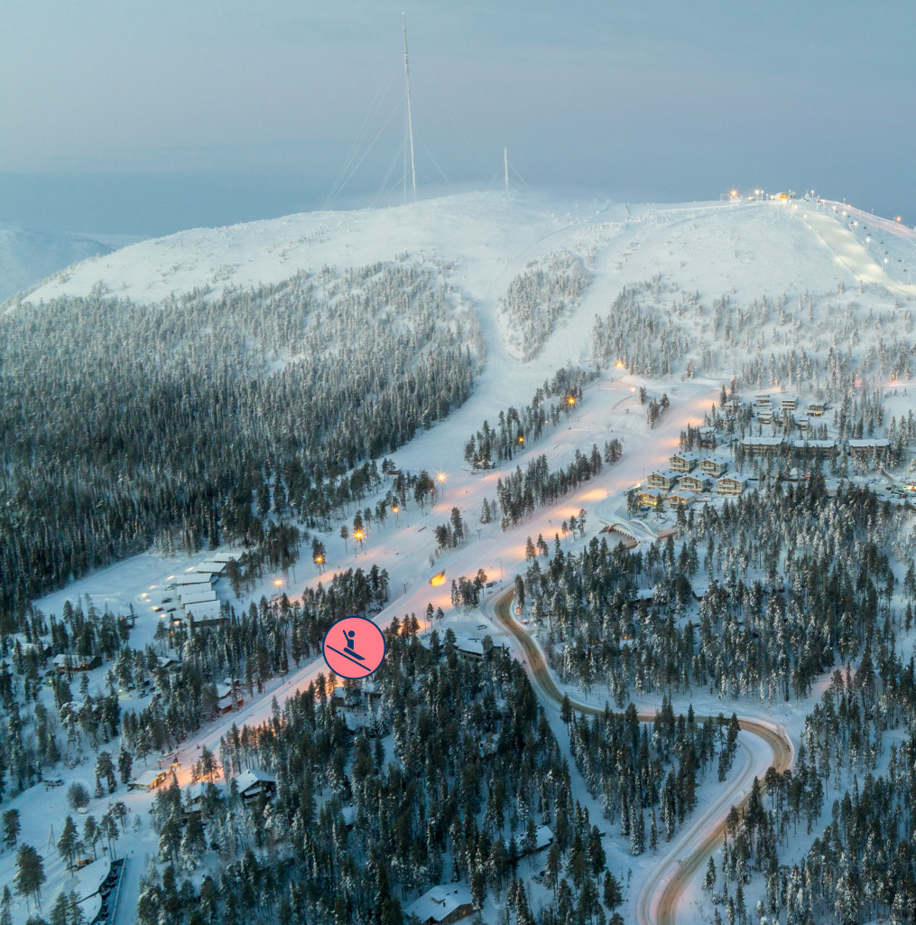 Laskea saa rinteen valaistua alaosaa, lähtö rinteen 14 (Skiway) sillan alapuolelta. Rinteessä liikkuu rinnekoneita ennen pulkkamäen alkamista, joten pulkkailu on sallittua vasta puoli tuntia rinteiden sulkeutumisen jälkeen.